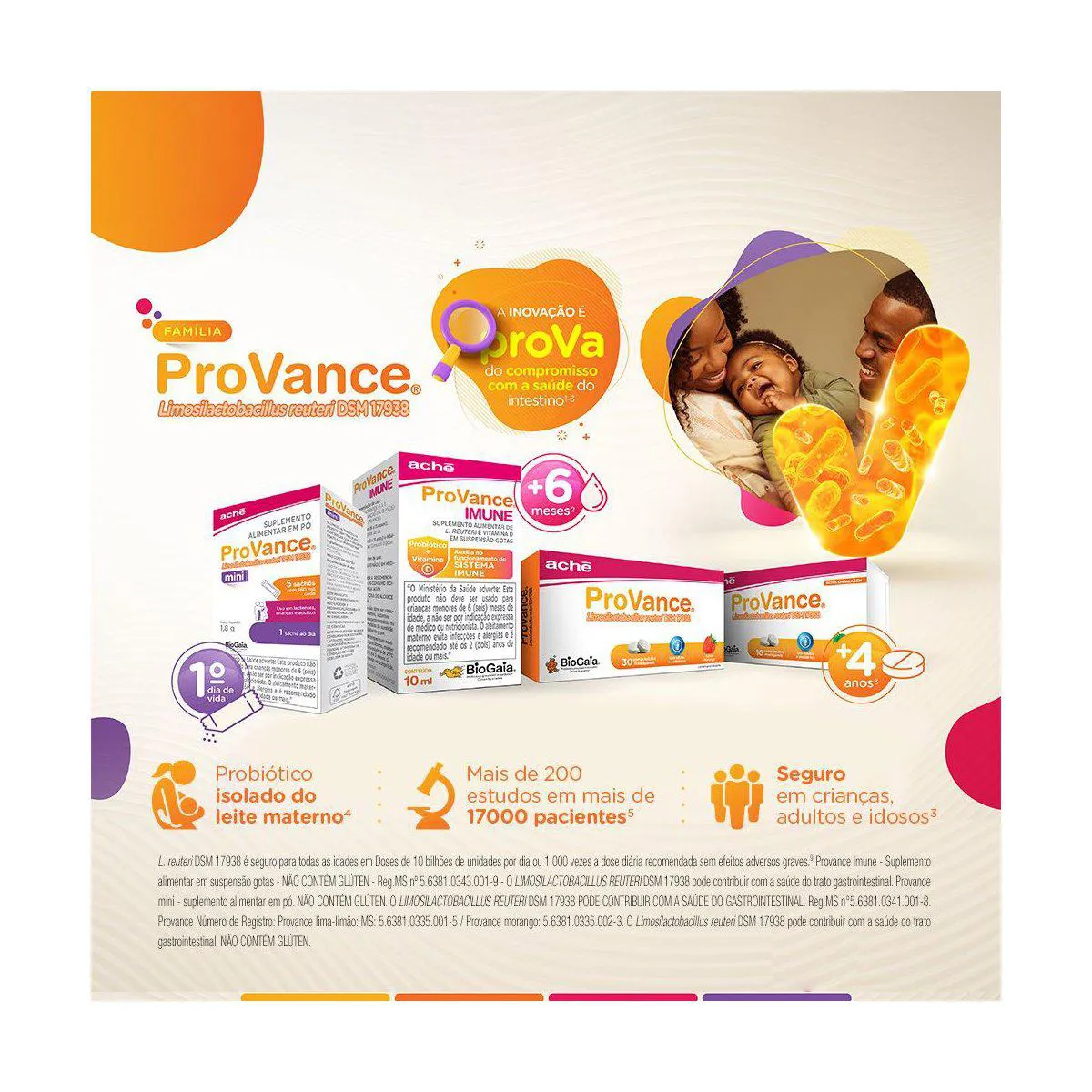 Indicado para pessoas com desconforto intestinal, o Probiótico ProVance possui em sua composição Lactobacillus Reuteri DSM 17938, microrganismos conhecidos também como bactérias boas, capazes de chegarem vivos no intestino, em que formam uma barreira protetora contra germes e/ou agentes agressores, restabelecendo o equilíbrio da flora intestinal.